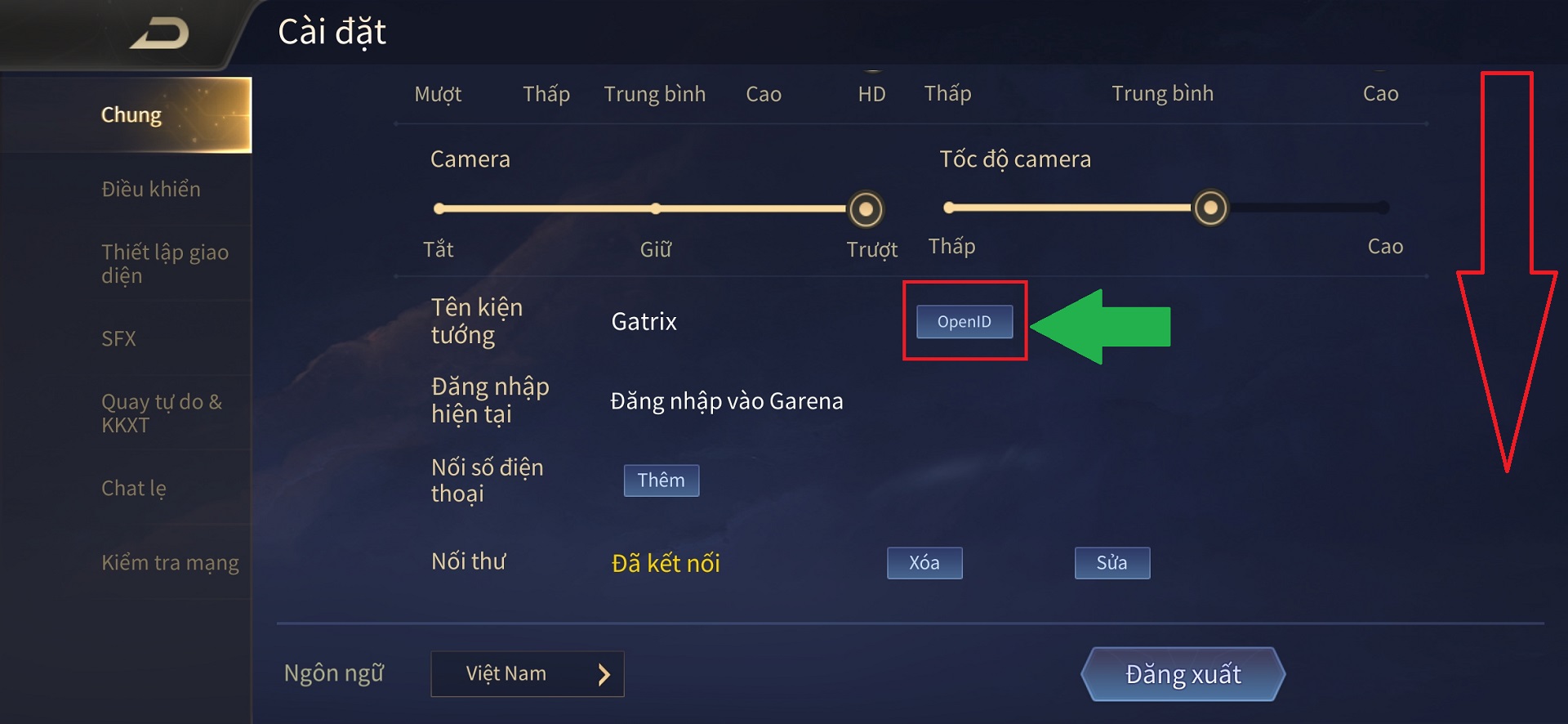 Bước 2: Ở phần CHUNG kéo xuống chọn phần OpenID
